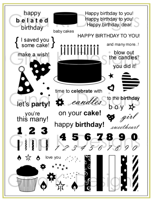 3. Do NOT attempt to cut out the smallest set of candles (without the patterns) apart from each other! This little row is intended to quickly stamp onto the large cake two step style or make quick borders on your cards or to make a birthday patterned ribbon.