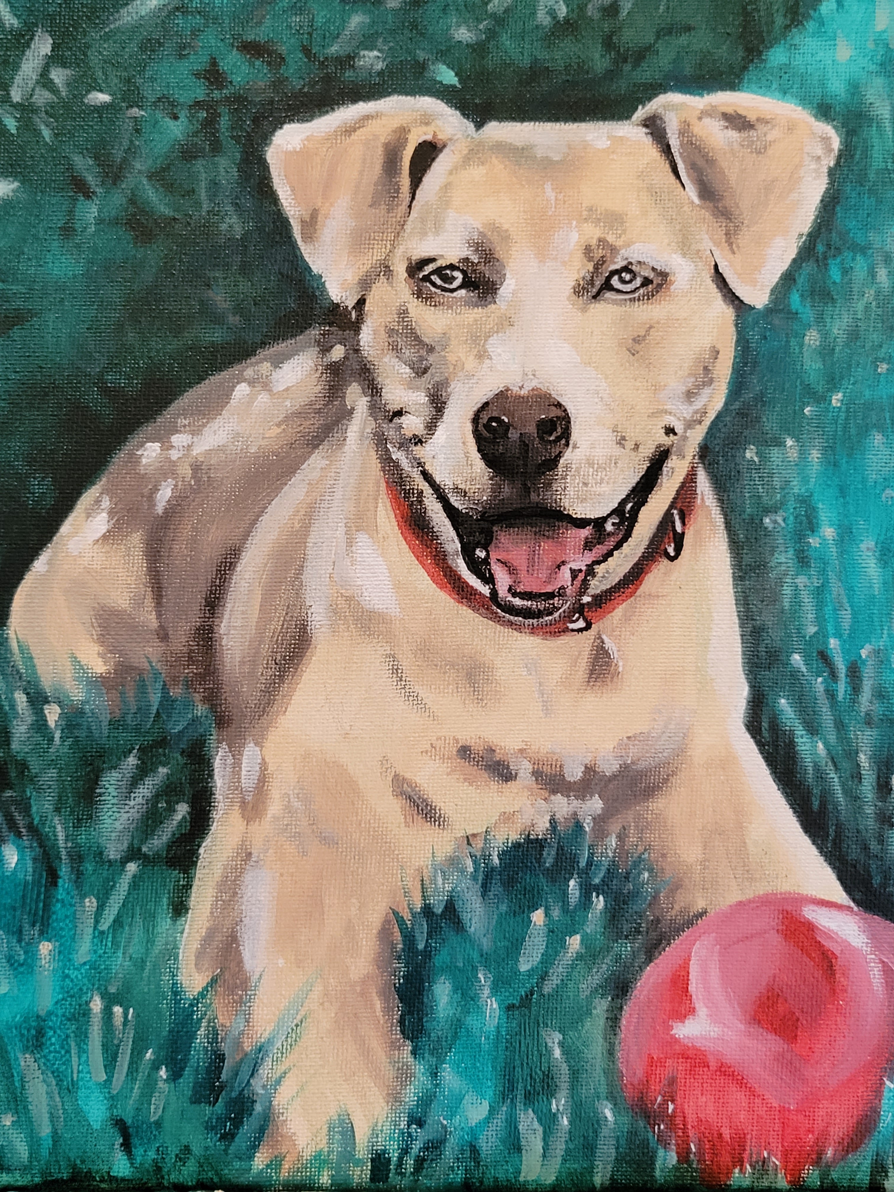 Reference photo I took during our consultation. (I am pretty good at capturing smiles in photos, even on pets!) They requested I pose him with his favorite rope...