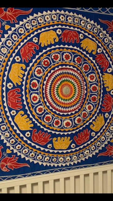I recovered the stained seat with some hand dyed fabric she brought back from her elementary school years in Ghana.